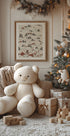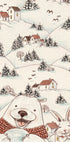 A tender winter vignette by Olena Kovalova: a gentle bear and a bright-eyed bunny journey across open snow fields beneath a hush of night. Subtle reds, greens, and teal accents evoke nostalgic holiday charm, balancing stillness and wonder—a cozy scene that invites joy, warmth, and story. Perfect for cozy holiday corners.