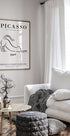 A minimalist line drawing of a stretching cat by Pablo Picasso, capturing the elegance and whimsy of feline form with fluid simplicity. This bold black-on-cream print is both playful and iconic, embodying the spontaneity of Picasso’s sketches.