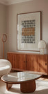 Pattern in Contrast by THE MIUUS STUDIO is an elegant study in balance and rhythm, layering hand-drawn lines, soft grids, and watercolor washes in warm beige, brown, and inky black. Organic textures meet crisp geometry, creating a calm, modern statement with mid-century spirit and quietly refined depth.