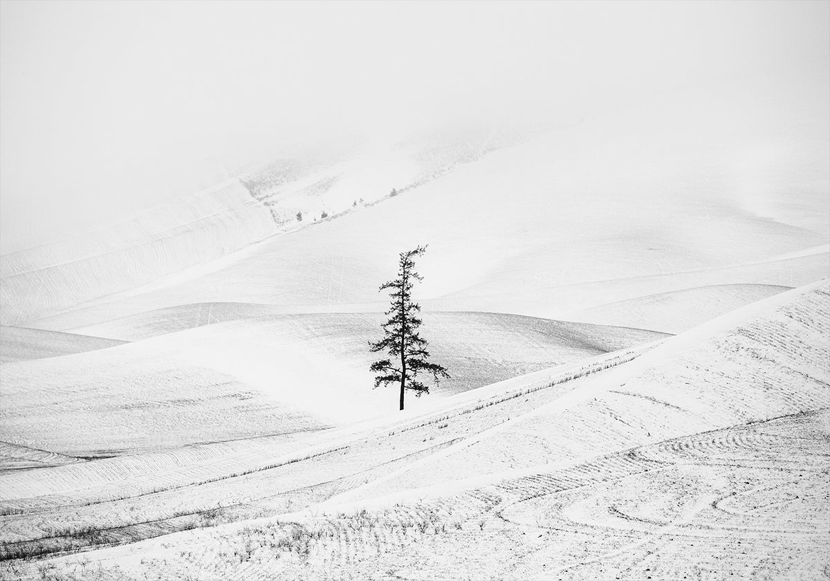 Vlad Sadovsky’s Paying respect captures a solitary fir poised on rolling Palouse hills, veiled in mist and winter light. High-key tones and gentle fog carve soft contours from snow and frost, evoking silence, space, and reverence in a minimalist monochrome landscape. A quiet homage to winter’s hush across the American Palouse, inviting reflection.