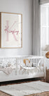 A sweet and minimal personalized name poster featuring a large initial paired with elegant script text. The soft heart background and warm pastel tones create a charming and timeless piece, perfect for a nursery, kids’ room, or as a thoughtful baby gift.