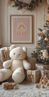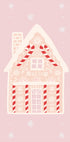 Step into a sugar-sweet winter scene: a pastel pink gingerbread cottage dusted with snow, dripping icy frosting and candy-cane trims, gumdrop accents, and warmly glowing windows beneath a gentle snowfall. Illustrated by Talitha McQueen, this whimsical centerpiece brings cozy holiday magic to any space.