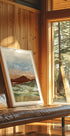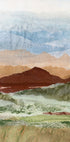 Lara Eckerman’s Plateau Mirage captures a sunbaked desert in warm terracotta tones: rolling hills and distant mountains ripple like heat waves, while cactus silhouettes punctuate the horizon. Textured, abstract layers evoke a Southwestern calm and rustic warmth in striking portrait form. Perfect for desert dreamers.