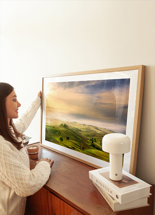 Podere Belvedere's Sunrise by Arnaud BRATKOVIC - Premium quality paper with a smooth matte surface and elegant feel. The matte finish reduces glare and gives a refined, timeless look. Strong and durable for long-lasting use, ideal for both professional settings and decorative displays.