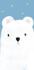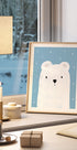 Drift into Polar Bear Dreams, a whimsical minimalist illustration by Bainai: a cuddly white bear against a calm blue backdrop, perched on crisp snow and ice. Soft shapes and gentle contrasts create a serene, playful mood perfect for nurseries and kids’ rooms, yet chic enough to brighten modern spaces.