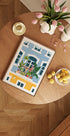 Step onto a sunlit Porto balcony in Petra Holíková’s illustration: pastel facades clad in azulejo tiles, wrought-iron railings and palms sway above the old town. A woman pauses at an open window with a cocktail, soaking up golden-hour calm—a postcard of Mediterranean colour and relaxed travel dreams.