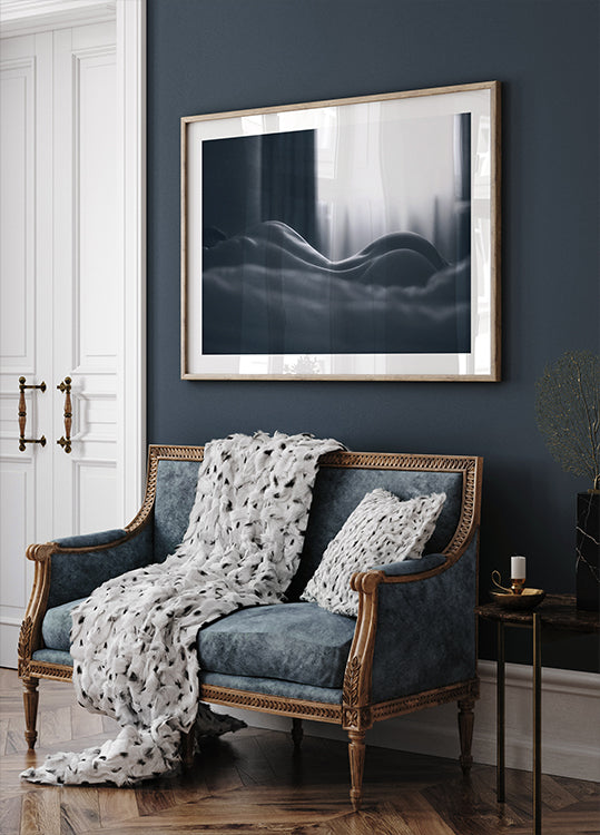 This atmospheric monochrome bodyscape captures the sensual curves of the female form bathed in soft window light. The delicate play of shadows and highlights enhances its figurative elegance, making it a refined fine art nude that blends intimacy, sensuality, and artistic sophistication.
