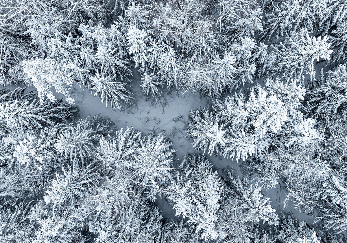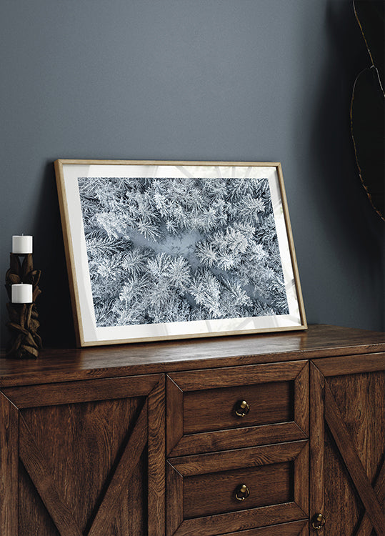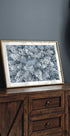 rahu, by artist Margus Vilisoo, captures the hush of a winter forest: dark pines dusted with fresh snow, fading into a pale horizon. Footsteps are absent; only the soft geometry of trunks and branches guides the eye. A serene, minimalist scene that invites stillness and quiet contemplation. Perfect for calming modern interiors.