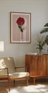 Bold and romantic, this contemporary floral illustration by Nicholas centers a vibrant red rose with lush green leaves against soft pink stripes. Clean lines, a focused composition, modern graphic simplicity, and a fresh, minimalist vibe give it striking clarity—a timeless love symbol for chic spaces and thoughtful gifting.