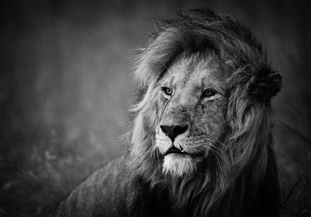 Regal by Mohammed Alnaser frames a lion in dramatic monochrome, its mane lifted by the wind as a steady, sovereign gaze commands the dark. Low-key lighting and a soft vignette carve sculptural detail, inviting you into the savannah’s hush—an intimate study of wild grace, strength, and untamed calm and poise.