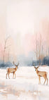 Zarte Rehe stehen still im verschneiten Winterwald, von kristallklarem Licht und sanften Pastelltönen umhüllt. Spuren im Schnee, Atem in der Kälte, Bäume wie gemalt – eine Szene voller Ruhe, Stille und Poesie. Ein stimmungsvolles Motiv von Ohkimiko, das Gelassenheit und Naturverbundenheit ins Zuhause bringt.