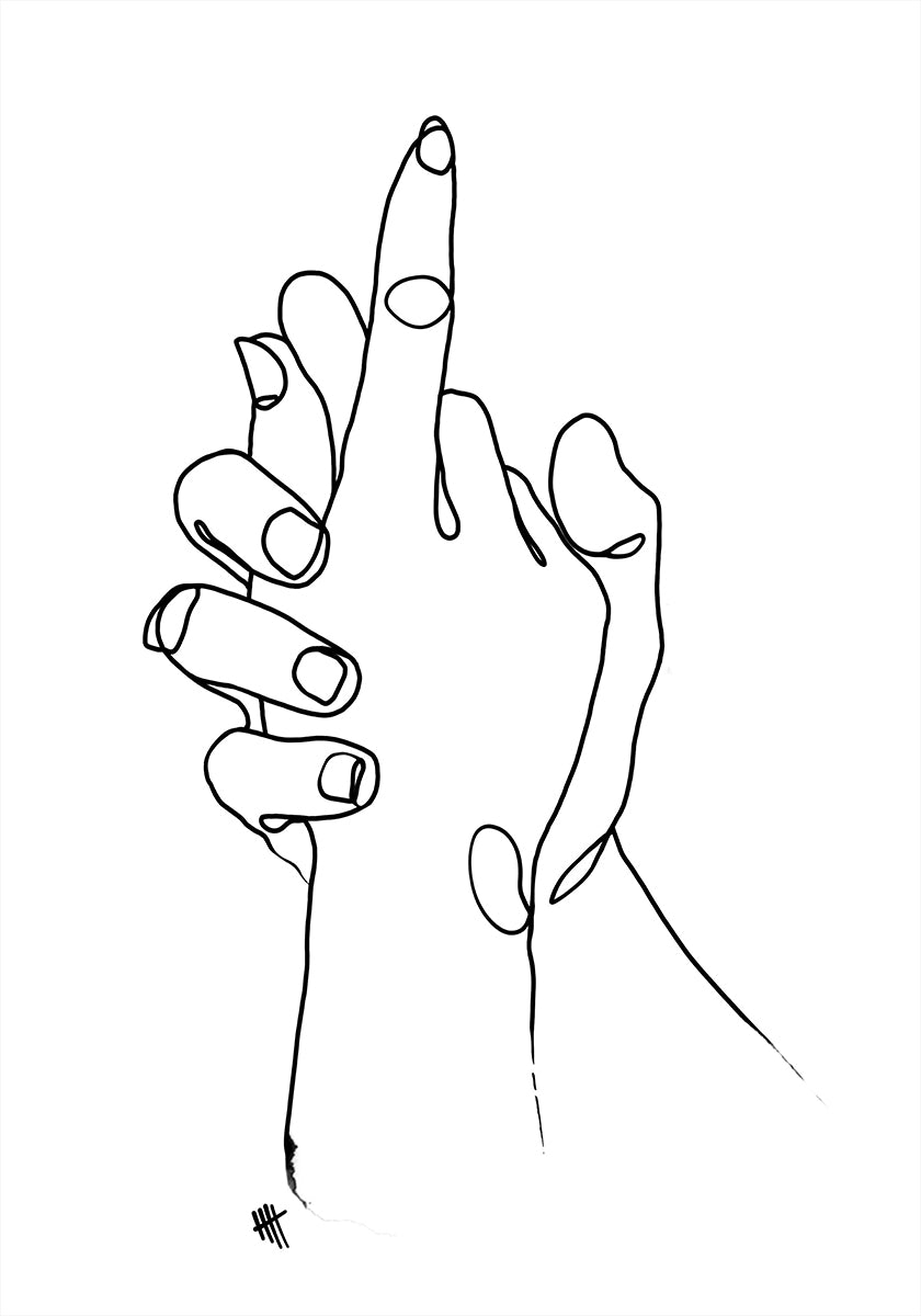 Safe Place by Hanna Lee Tidd captures a tender moment in elegant one-line minimalism: two hands gently interlace, forming a quiet sanctuary of trust and togetherness. Black-and-white lines, a bright white backdrop, and contemporary poise make it a refined statement of love, intimacy, and modern romance. A perfect ode to closeness.