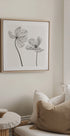 Two perspectives, one bloom: Lotte Grønkjær’s monochrome diptych captures the same tulip in elegant front and back views. Silky petals and a sinuous stem emerge in high-key light, revealing texture, symmetry, and quiet movement. A serene, minimalist botanical study with timeless Nordic poise. Perfect for tranquil, modern interiors.