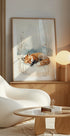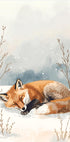 A winter hush settles as a fox curls into a cinnamon-red ball, asleep beneath frosted branches and a dusting of fresh snow. Subtle footprints fade into the white, while gentle shadows sculpt the scene. A serene woodland vignette by Ohkimiko, inviting calm, warmth, and wintry wonder into your space. Peace.