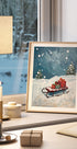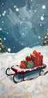 Ein stimmungsvolles Wintermotiv: Ein hölzerner Schlitten, beladen mit liebevoll verpackten Geschenken, ruht im frischen Schnee zwischen Tannen. Leise fallen Flocken und wecken Vorfreude auf die festliche Zeit. Diese zauberhafte Illustration von Ohkimiko bringt Behaglichkeit und Weihnachtszauber in jedes Zuhause.