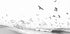 Seascape BW by Kathrin Pienaar captures a high‑key shoreline in timeless monochrome. A flock of birds arcs across the bright horizon, skimming the surf above pale sand, their motion carving airy rhythms into the scene. Minimalist and serene, it evokes salty breezes, open water, and the hush of an empty coast.