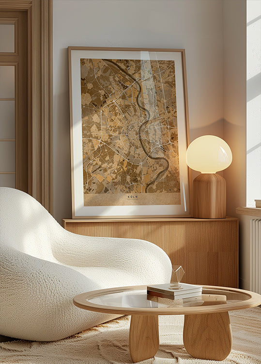 Explore Köln through a sepia-tinted vintage map that traces the meandering Rhine, the storied Altstadt, and routes converging at the iconic Kölner Dom. Aged tones, delicate gridlines, and classic cartographic labels evoke old-world charm, turning the city’s streets and bridges into a timeless statement piece.