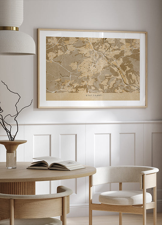 Sepia vintage map of Stuttgart downtown Germany Poster