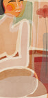Serene Reflection by Treechild captures a quiet pause: a graceful nude figure in soft peach and beige watercolour, her gaze lowered in calm thought. Delicate botanical lines drift around her silhouette, balancing warmth and minimalism for an elegant, modern focal point in bedroom or gallery walls. A quietly poetic study of feminine strength.