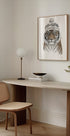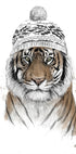 A stoic Siberian tiger in a knit beanie, gazing head-on against a crisp white backdrop, blends wild majesty with playful winter charm. Balazs Solti’s minimalist illustration adds wit and warmth, making this quirky portrait a striking, humorous centerpiece for modern seasonal decor. Perfect for winter walls and year-round smiles.