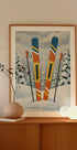 Carve into winter with this dynamic alpine scene by HUGO: a skier leans into a sweeping turn, powder pluming in their wake as chairlifts trace the sky and firs fringe the slope. Crisp blues and warm sunset notes collide, capturing speed, solitude, and the pure exhilaration of a fresh mountain run. Feel the cold air sing.