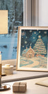 Step into a nostalgic winter village where soft snow blankets steep rooftops, warm windows glow, and a towering Christmas tree anchors the square. Painterly brushstrokes capture frosty air, chimneys puffing, and quiet streets, evoking retro holiday charm and the cozy hush before festive celebrations.