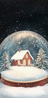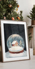 Step into a nostalgic winter dream: a vintage-style snow globe cradles a tiny alpine town, pine trees dusted in white and warm-lit houses glowing against deep forest green. Snowflakes swirl in gentle motion, framing a cozy holiday hush. Artwork by Melloi Art Prints. Retro charm and moody tones make it perfect for winter decor.