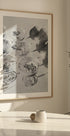 A refined black and white photograph capturing the play of light and shadows through elegant champagne glasses decorated with tiny star-shaped confetti. The minimal composition and sharp reflections create a sophisticated and artistic atmosphere. Perfect for modern interiors, gallery walls, or a stylish bar corner.