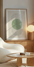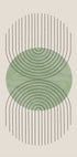 Calming waves of geometry ripple in perfect symmetry: concentric arches and rings flow across layered shades of green, from moss to mint. Clean lines and balanced curves create a gentle rhythm, blending mid-century minimalism with modern graphic flair—a soothing focal point for serene, contemporary spaces.