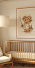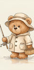 A heartwarming illustration of a cute teddy bear dressed in a fishing outfit, complete with a wide hat, coat, and basket. Standing in a puddle with a fishing rod in hand, this charming print captures a peaceful and playful moment — perfect for kids’ rooms, nurseries, or whimsical wall decor.