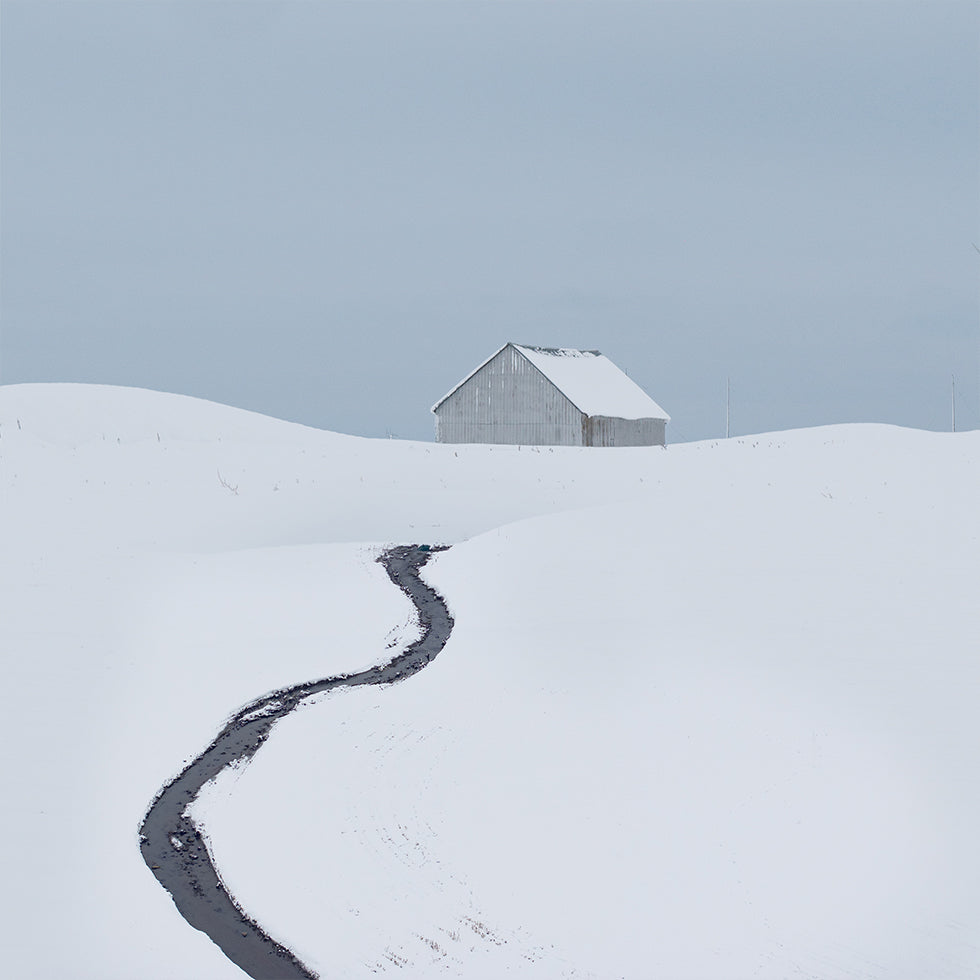 Step into the hush of winter with The cabin by artist Xiang Wei: a solitary hut nestled by a slow, glassy stream, framed by frost-tipped pines and blanketed hills. Snow drifts mute every sound, smoke curls from the chimney, and a pale sky glows—an intimate portrait of stillness, warmth, and rural calm.
