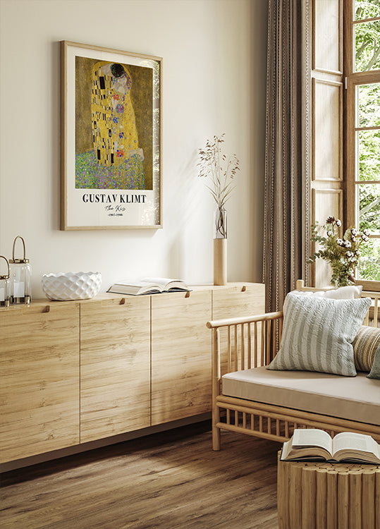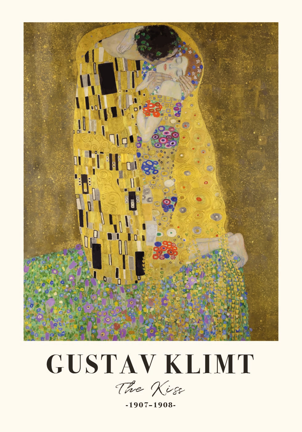 Gustav Klimt’s masterpiece *"The Kiss"* is a mesmerizing symbol of love and intimacy, created during his Golden Period. This iconic artwork features a couple locked in an embrace, enveloped in golden patterns and vibrant floral motifs. With its rich details and luxurious gold leaf, this piece remains one of the most celebrated works of Symbolist art, evoking romance and passion.