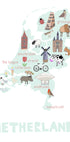 Explore The Netherlands with this whimsical illustrated map by artist Carla Daly. Packed with Dutch icons—windmills, tulips, bikes and canals—and charming animals from cows to birds, it highlights Amsterdam, Rotterdam and Eindhoven (with the Evoluon), playful typography, and soft Nordic pastels—a joyful guide for kids and travel lovers.