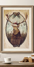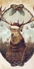 Celebrate the season with Mike Koubou’s whimsical illustration: a contemplative deer in a snowy woodland, grand antlers twinkling with ornaments, a curl of pipe smoke and a hint of Santa mischief drifting by—retro, witty, and wintry art that brings cozy nostalgia to your festive walls. Perfect for winter cabins, living rooms, and gift-giving.