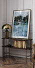 Helena Ryhle’s Trees Reflected in Water captures a hushed winter shoreline in delicate aquarelle. Slender trunks rise through misty light while their mirrored forms drift across a glassy surface. Cool blues, soft greens and frosted greys evoke serenity and melancholy in an impressionistic, nature‑led reverie.