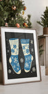 Bold blue lettering pops against a deep-black backdrop, spelling out playful winter words like "Socks" and "Knitwear" in a nostalgic, retro layout. Crisp, graphic and low-key, it channels frosty nights, snow-day memories and cozy season vibes—perfect for bringing cool holiday mood to modern spaces.