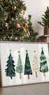 Whimsical Pines brings the magic of winter woods to your walls: a minimalist grove of watercolor evergreens in soothing greens, accented with tiny ornaments and twinkling stars. Soft washes and clean silhouettes create a calm, modern festive mood—perfect for cozy corners and holiday gatherings. A Scandinavian-inspired touch for the season.