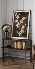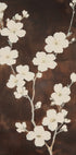 Delicate white cherry blossoms unfurl across a warm brown backdrop, their slender branches tracing elegant arcs in a tranquil, minimalist composition. Soft petals and subtle shadows create depth and calm, bringing a whisper of spring to any space—serene, contemporary, and effortlessly refined.