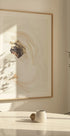 A luminous white peony unfurls in soft, layered petals against a clean, high‑key backdrop, its fresh green leaves framing a serene botanical still life. Minimal yet romantic, this elegant bloom invites calm and clarity to any room. Artwork by Pictufy Studio III, perfect for nature‑loving, modern interiors.