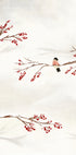 Let winter hush your walls with this dreamy scene by Nikita Jariwala: a charming bird perched on a snow-dusted branch, crimson berries bright against soft beige and smoky blacks. Whispering flakes fall, textures glow, and a whimsical calm settles in—perfect for cozy corners and festive, serene spaces.