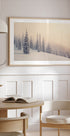 Step into a hushed winter forest where tall pines stand dusted in fresh snow and delicate flakes drift through the air. A pale sky softens the horizon as a quiet path invites wanderers into the stillness. Calm, crisp, and quietly luminous, this scene captures the magic of a peaceful, snow-laden morning.