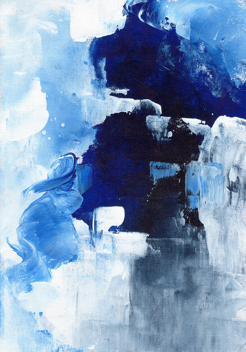 Winter Night by Ejaaz Haniff evokes the hush of a snow-laden evening through bold, expressive brushstrokes. Cool blues and icy whites drift across the composition, suggesting drifting frost and distant glow. An abstract study of stillness and movement, it brings serene, wintry drama to any space. Inspired by icy nights and northern light.