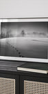 Winter Scenery by Larry Deng APA portrays a serene monochrome landscape: an open field of snow, delicate frost shimmering, and a distant line of bare trees beneath a pale sky. Soft footsteps trace a quiet path across the whiteness, inviting contemplation, stillness, and balance in a refined, minimalist composition for tranquil interiors.