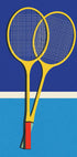 Rosi Feist turns vintage wooden badminton rackets into bold graphic poetry: honey-toned frames and taut strings lined up in playful, mid-century geometry. Warm neutrals and clean shapes serve cool retro energy—perfect for adding sporty rhythm and understated charm to modern rooms. An upbeat statement for studios, hallways, and game rooms.