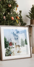 Drift into a hush of winter with this watercolor by artist Emel Tunaboylu: a gentle deer and curious rabbit pause among snow-dusted pines beneath a misty mountain horizon. Soft neutrals, drifting snowflakes, and fairytale calm invite cozy stillness, turning any wall into a tranquil woodland tale. A whisper of festive magic.