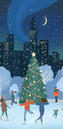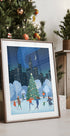 Glide into the season with Petra Lizde’s Xmas in NYC: a charming illustration of ice skaters tracing bright arcs beneath a towering Christmas tree, snow drifting softly over Central Park as the Manhattan skyline glows. Cozy scarves, twinkling lights, and festive energy capture winter magic in New York.