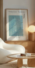 A graceful Japanese textile-inspired print from the late Edo period by Taguchi Tomoki. Stylized waves in shades of teal and blue form a repeating pattern, scattered with elegant white cranes—an homage to traditional kimono motifs.