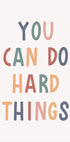 This motivational print features the phrase "You Can Do Hard Things" in bold, playful type, turning a simple mantra into a striking statement. Vibrant, overlapping letters create movement and warmth, radiating positivity. A cheerful focal point for offices, studios and bedrooms, it brings daily encouragement and color to the walls that need it most.