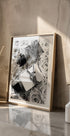 A striking black and white photograph of Yves Saint Laurent perfumes, elegantly placed on a bed of roses. The bold YSL logo, sleek design, and floral backdrop create a perfect harmony of luxury and romance, making this print a refined choice for interiors inspired by beauty, fashion, and timeless elegance.